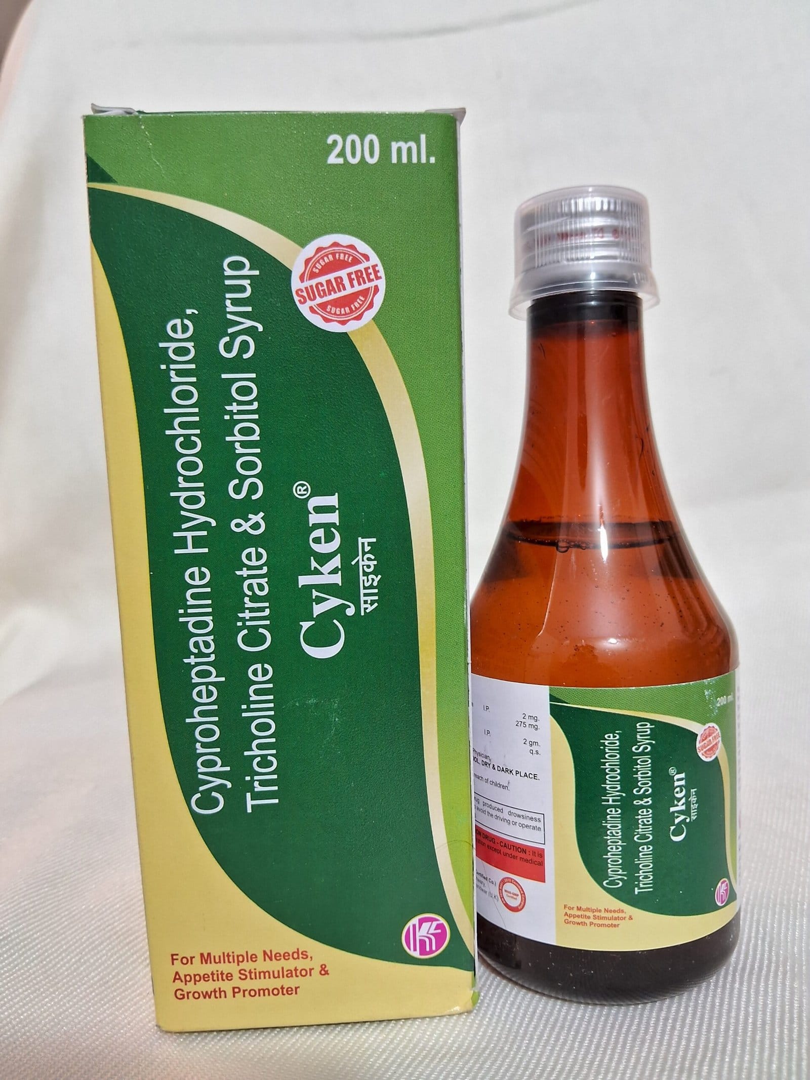 CYKEN SYRUP is a powerful appetite stimulant and liver tonic formulated with a combination of Cyproheptadine Hydrochloride, Tricholine Citrate, and Sorbitol Solution 70%. It helps in improving appetite, promoting healthy weight gain, and supporting overall digestive health. This unique formulation is suitable for both adults and children experiencing loss of appetite, weakness, or nutritional deficiencies.