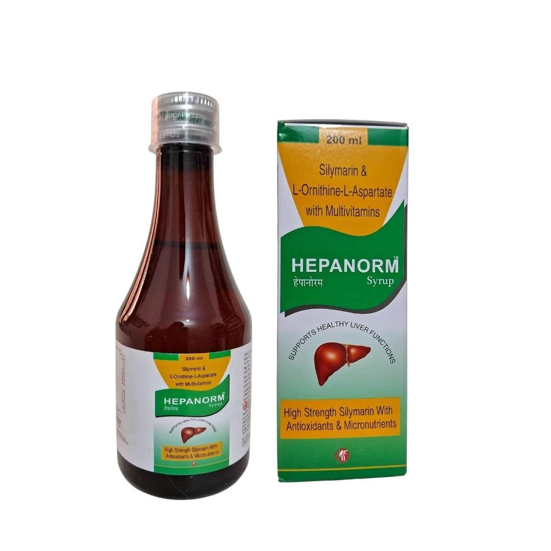 HEPANORM Suspension is a powerful liver tonic formulated with a synergistic blend of L-ornithine-L-aspartate, Silymarin, and Multivitamins. It helps restore normal liver function, supports detoxification, and boosts overall metabolism. Ideal for individuals suffering from liver disorders, fatty liver, or liver damage due to alcohol or medications.
