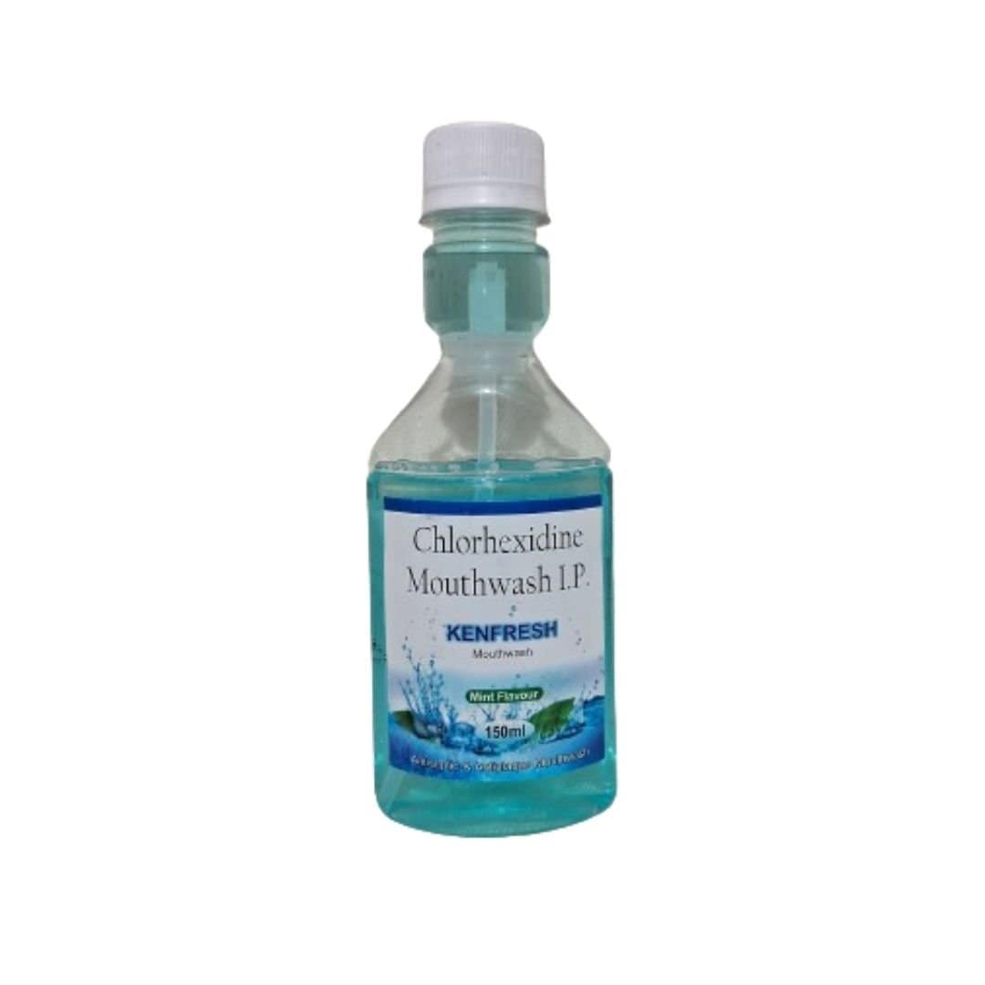 Kenfresh Mouthwash (Pump Packing) is an effective antiseptic mouthwash containing Chlorhexidine Gluconate 0.2% w/v, specially formulated to maintain oral hygiene and prevent infections. It helps reduce dental plaque, gingivitis, and bad breath while providing long-lasting freshness. Kenfresh is ideal for both daily use and post-dental surgical care.