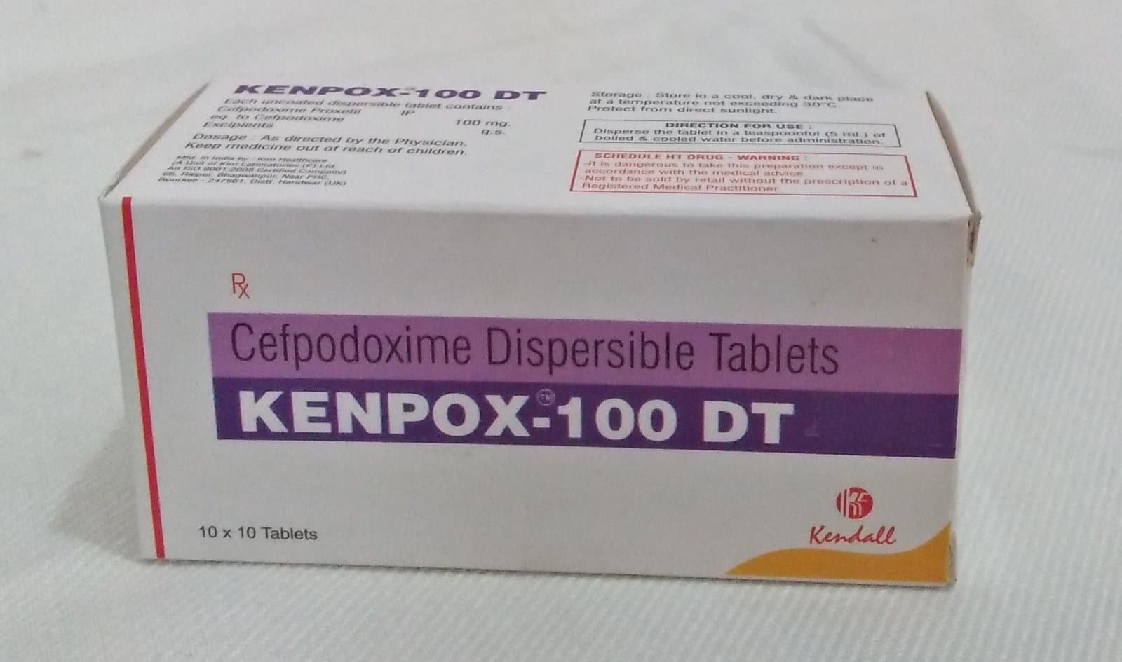 KENPOX-100-DT Tablet (Cefpodoxime Proxetil 100mg) is a broad-spectrum antibiotic belonging to the third-generation cephalosporin class. It is used for the treatment of bacterial infections affecting the respiratory tract, urinary tract, skin, and soft tissues. The dispersible tablet (DT) formulation ensures quick dissolution and faster therapeutic action, especially suitable for children and adults who have difficulty swallowing regular tablets.