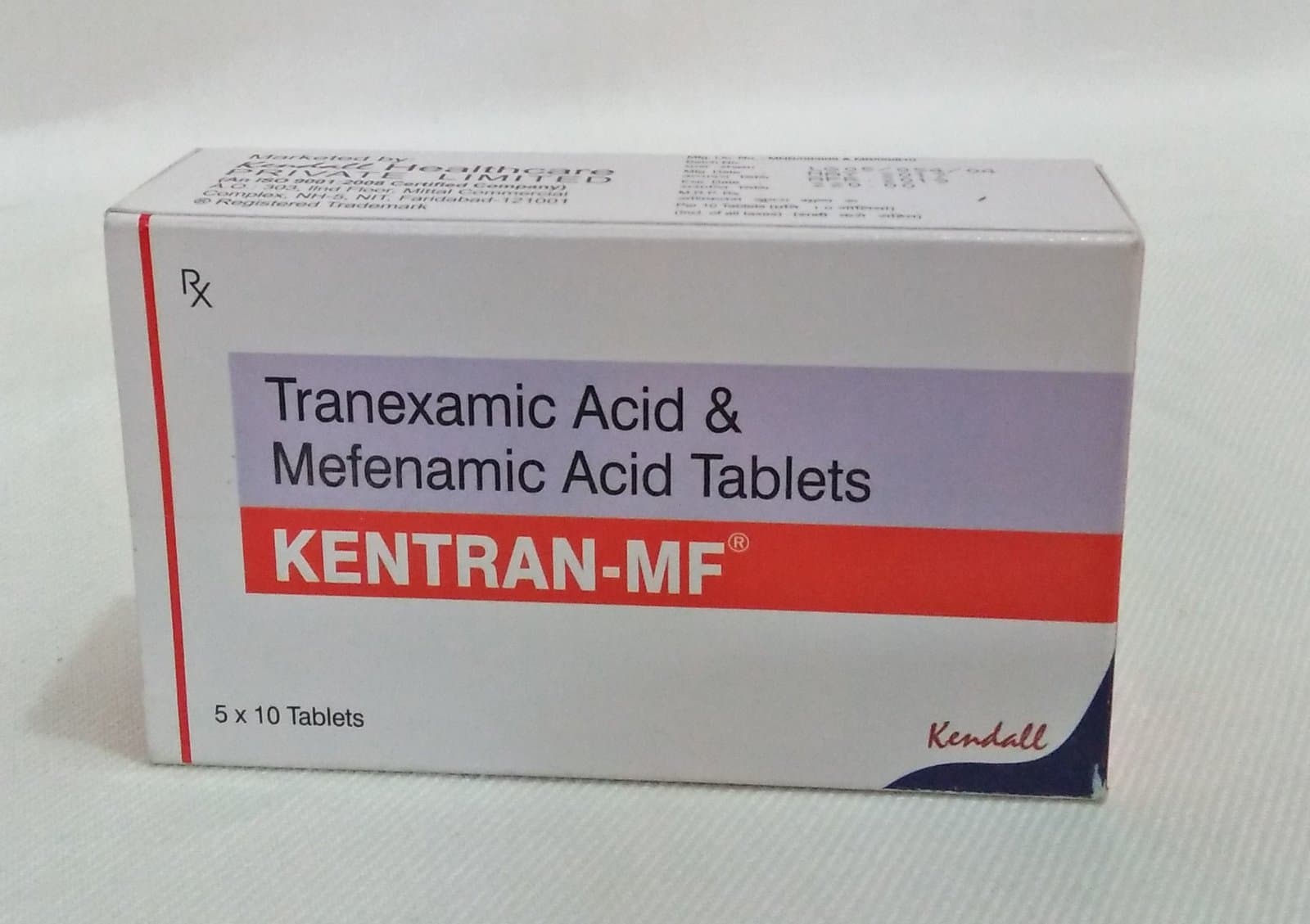 KENTRAN-MF Tablet is a powerful combination of Tranexamic Acid (500mg) and Mefenamic Acid (250mg) designed to effectively manage heavy menstrual bleeding and severe menstrual pain. This formulation works by targeting both the cause of bleeding and pain to provide fast and lasting relief.