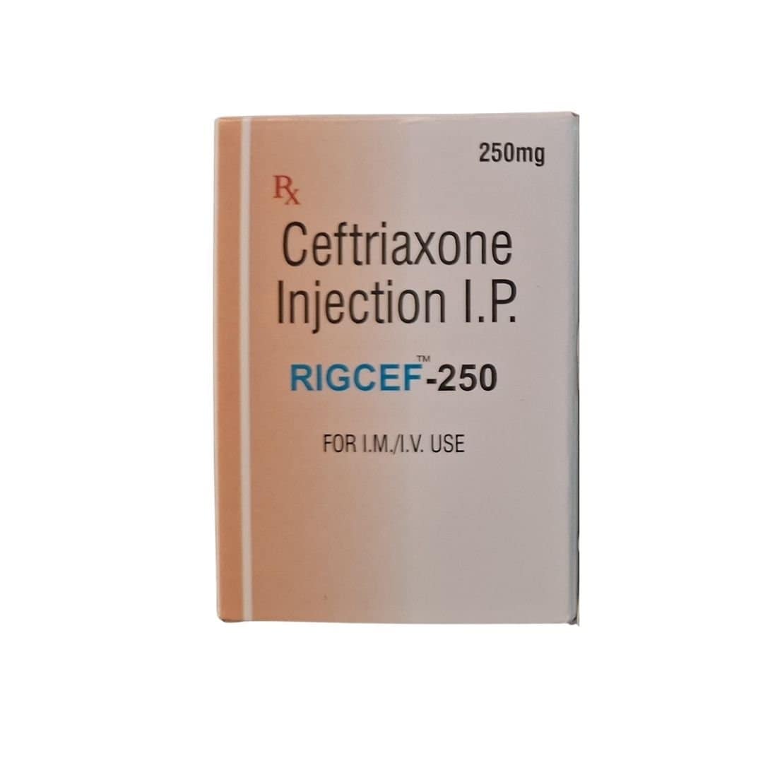 RIGCEF-250 Injection contains Ceftriaxone 250 mg, a third-generation cephalosporin antibiotic used to treat a wide range of bacterial infections. It works by inhibiting the bacterial cell wall synthesis, thereby killing bacteria and stopping the infection from spreading.