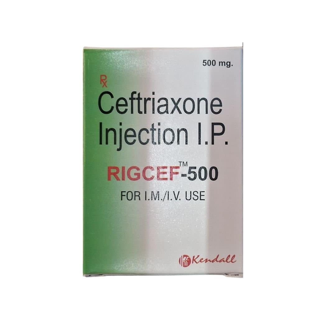RIGCEF-500 INJECTION contains Ceftriaxone 500 mg, a third-generation cephalosporin antibiotic used to treat a wide range of bacterial infections. It works by inhibiting bacterial cell wall synthesis, thereby killing the bacteria and stopping infection spread. This injection is ideal for treating serious infections caused by susceptible microorganisms.