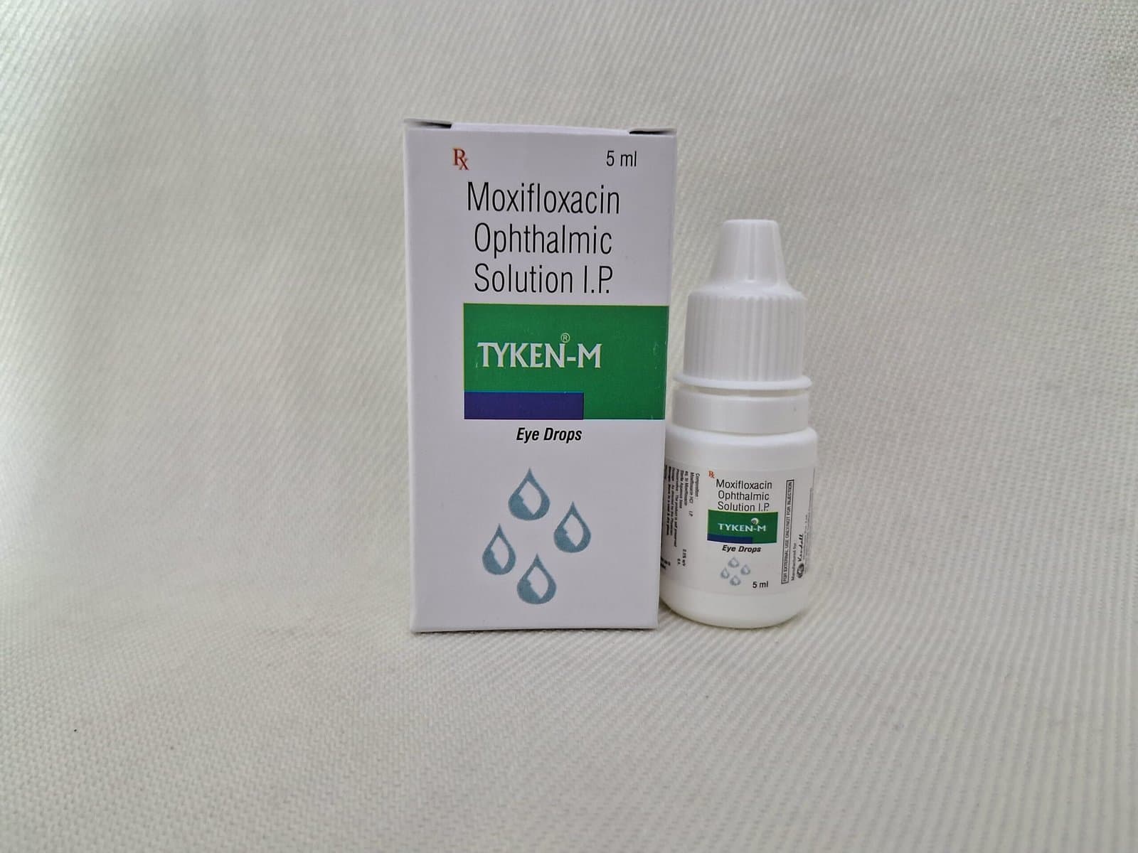 TYKEN-M Eye Drop is an advanced antibacterial ophthalmic solution containing Moxifloxacin 0.5% w/v. It is used to treat and prevent bacterial infections of the eyes, such as conjunctivitis and corneal ulcers. This eye drop provides rapid relief from redness, irritation, and discharge caused by bacterial invasion, helping restore clear and healthy vision.